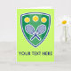 Cartão De Saudação Personalizável Para Jogadores Tênis. Design brilhante com raquetas e bolas cruzadas. Presentes e camisetas pessoais e personalizáveis da equipe de tênis para homens, mulheres, rapazes, raparigas, pais, mãe, treinador, treinador, bebê, criança, criança. Adicione seu nome de tênis ou clube.