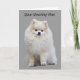 Vá personalizar e mude o texto, SUA GREETING AQUI, para o que você quiser. Por exemplo, Feliz Aniversário, Obrigado, Pensando Em Você, Seja Bem, Senhorita Você, Parabéns, Aniversário, etc. Este cartão foi deixado como dentro de vazio para permitir que você transmita sua própria mensagem pessoal. O Pomeraniano é um companheiro arrogante e animado com personalidade extrovertida. Este pequeno cão compacto é uma raça de brinquedos ativa com um caráter de alerta e expressão semelhante à raposa. Hoje, o Pomeraniano é um cão companheiro popular e um cão-show competitivo. Podem vir em todas as cores, padrões e variações, embora laranja e vermelho sejam os mais populares. Os pomeranianos são cães muito inteligentes que adoram agradar. Por causa dos seus temperamentos, eles podem ser bons cães de família com o treinamento certo. Devido ao seu pequeno tamanho eles não exigem muito exercício, mas são uma raça enérgica que precisa de atenção de suas pessoas frequentemente. Possuem um casaco duplo grosso, que precisa de ser escovado regularmente.