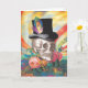 Crânio sorridente em um chapéu com adornos psíquicos. Uma saudação única para um indivíduo único, muito distante e muito velho. Tome tempo para cheirar as flores... e sorria - ou então...