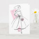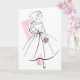 Um design do estilo século Médio com um toque retrorreflector com desenho de linha de uma noiva em rosa e branco sobre fundo branco. Inspirados em padrões de vestidos e ilustrações de moda dos anos 50 e 60. Um design personalizável para você personalizar com seu próprio texto, imagens e ideias. Uma imagem de arte digital original criada por Jess Perry no QuirkyChic Retro