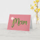 Pequenas flores e folhas de primavera com o texto "Mãe" são destacadas em um fundo cor-de-rosa de morango. Clique em "Personalizar" para alterar o plano de fundo para uma cor diferente, se desejado.