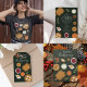 Cartão de saudação do tema "Ação de Graças" com uma ilustração desenhada à mão do banquete de feriado.
