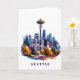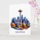 O cartão de boas-vindas é mostrado com uma bonito impressão de aquarela do horizonte de Seattle, no estado de Washington. dentro vazio. Personalize esta placa e adicione seu próprio dentro de mensagem ou comprar especial como está. Impressão licenciado