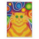 Querida Groovy! Um gato listrado amarelo e laranja com bigodes giratórios e um fundo de arco-íris psíquico com padrão. Cartão de saudação com um design personalizável amarelo, laranja, vermelho, azul, verde, rosa, roxo e branco para que você personalize com seu próprio texto, imagens e ideias. O texto pode ser facilmente alterado usando o modelo fornecido ou clique no botão 'Personalizar o texto' para fazer mais alterações. Um desenho de lápis colorido digitalmente melhorado por Jess Perry.