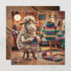 Você já viu um tricô de ovelha? Este cartão de saudação engraçado retrata uma ovelha tricotando um saltador colorido estocado de seu próprio suprimento de lã. A ovelha está sentada num banquinho em sua oficina e está contente enquanto ela se ajoelha. Na parte de trás do cartão lê-se "woollyback". A palavra "woollyback", bem como ser um trocadilho - a palavra é impressa no verso do cartão - tem um significado especial para aqueles de nós que residem no campo, especialmente no Noroeste de Inglaterra. Há espaço na parte de trás do cartão de saudação de quadrado plano para escrever uma mensagem personalizada.