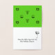 Os ouros são agrupados (3 cada um) em ambos os lados do texto "Feriados Felizes" na frente. A aba dentro superior mostra oito imagens de três sinos diferentes, preto sobre fundo verde). Na parte inferior do flap lê-se "Que os sinos toquem com alegria esta temporada de festas" e um sininho se agrupe em preto no canto superior direito.