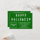 Horror, assustador, assustador, assustador, fantasma, monstro, crânio, abóbora, etc. Feliz Dia das Bruxas! Feriado para assustar, mas não para assustar clientes ou clientes. Feriado para comemorar este mês de outubro e anunciar também o seu negócio. Cartão de saudação simples de pequeno tamanho que você pode personalizar para colocar sua marca de negócios e com saudação de Halloween. Personalize-o e use-o para saudar seus clientes ou clientes neste Halloween e como material de marketing para anunciar sua empresa ou promover seu nome de marca. Você também pode usá-lo como acessório do material de embalagem do seu produto. Cartão de saudação personalizável que você pode usar para criar reconhecimento de nome de marca. As cores design são textos verdes claros e brancos sobre fundo verde. Para personalizar a saudação deste cartão, carregue o logotipo da sua empresa, digite seu nome, endereço, número de telefone, e-mail e site ou a página de mídia social da sua empresa. Verifique a aparência após carregar o logotipo e digitar textos. Se a aparência lhe agrada, você pode colocar seu pedido agora. Se você precisar redimensionar e mover o logotipo e os textos para o ajustado nesta placa ou em outros tamanhos que você escolher, mude na ferramenta design. Você também pode alterar a cor do plano de fundo, a cor da fonte e o estilo da fonte na ferramenta design. Feliz Dia das Bruxas! Desejando mais vendas neste feriado.