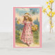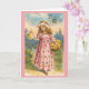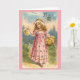 Vintage / Victorian Best Wishing card. Adorável garota vitoriana com um cesto de flores! Melhores Desejos!