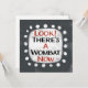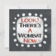 Um design de animais tipográficos irreverentemente estranho que diz "Olha! Há um Wombat agora". Ele apresenta texto preto e vermelho em um retângulo branco com pontos brancos engraçados e brincalhões ao redor dele, tudo em um fundo de cinza.