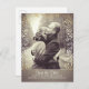 Cartão postal de save the date com foto e flores de bebê em folha dourada.