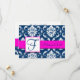 Cartão de Save the Date Damask Azul Naval Fúcsia