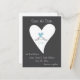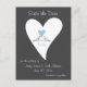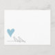 O design do produto apresenta duas pombas brancas que se aninham juntas e olham para cima em direção a um coração azul claro. Pombas brancas são símbolos de amor, sorte, paz e prosperidade. Esta ilustração simples de pássaros torna cartões-postais de save the date de casamento modernos e únicos e fofos.