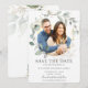 Destaque sua foto pré-casamento com este cartão de save the date de foto boho chic. Com belas folhagens verdejantes em aquarela. Personalize-o com seus detalhes de forma fácil e rápida, basta pressionar o botão personalizar para reorganizar e formatar o estilo e a colocação do texto.