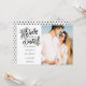 Este cartão de save the date de letra manual moderna com foto apresenta a sua foto especial e uma data de save the date de letra manual acima dos seus nomes, data e local. O verso apresenta um padrão de pontos que você pode personalizar para a sua cor favorita ou excluir e adicionar informações adicionais da celebração. Criado por Thisisnotme