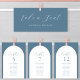 Placa de Cabeçalho de Gráficos de Mesa de Casamento com Script Azul Moderno e Moderno Minimalista. Todos os textos estão pré-organizados para que você personalize fácil e rapidamente com seus próprios detalhes.