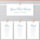 Cartão de Cabeçalho de Gráficos de Mesa de Casamento Clássico Clássico Moderno Dusty Azul com Caligrafia Azul. Todos os textos estão pré-organizados para que você personalize fácil e rapidamente com seus próprios detalhes.
