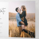 Capture a essência da sua história de amor com o nosso belo Casamento Personalizado de Foto Salve a Ficha de Datas com elegante tipografia de script. Este eterno e design personalizado serve como o prelúdio perfeito para o seu dia especial, permitindo que você compartilhe um vislumbre de sua alegria com os entes queridos. Esta opção salva a data apresenta uma saudação horizontal de fotos e scripts que abrange todo o fundo, fora desta placa tripla.