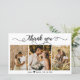 Orçamento, Elegante, Marinho de Mão Casando Três Colagem de Fotos Obrigado barato personalizado cartão THIN de baixo orçamento. modelo de cartões de agradecimentos de casamento com (3) três fotos na frente e uma foto no verso. ***POR FAVOR, NOTE! *** O PAPEL ORÇAMENTAL/FLYER É FINO. *** ATUALIZE O PAPEL PARA UM PAPEL MAIS ESPESTO. *** Com o texto "Amor e obrigados" em uma fonte de script de caligrafia escrita à mão girada com oscilações de cor branca em fundo azul marinho. Personalize o seu nome personalizado e a sua mensagem de obrigado. Um pouco de coração entre os nomes. Se precisar de ajuda ou item correspondente, entre em contato com o designer! Se preferir escrever manualmente a sua nota, basta eliminar o texto de amostra para obter mais espaço.