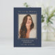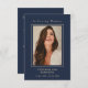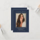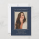 Este simples cartão de guarnição memorial pode ser dado como guardião numa Celebração da Vida ou num serviço de funeral ou enviado como homenagem especial a quem não pôde estar presente. Design apresenta uma tipografia elegante de script dourado num fundo azul clássico. Personalize este cartão com uma foto favorita, o nome do seu amado, datas e a sua escolha de oração ou poema. Fácil de personalizar fotografia e texto.