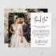 Orçamento, Elegante moderno e manuscrito Script Heart Foto Barato Cartões de agradecimentos de Casamento Barato em Preto e Branco. Na moda, modelo de cartão de casamento minimalista com 1 foto na frente e 1 foto no verso. Texto "Obrigado" em tipografia escrita à mão ou escrita caligráfica com coração de amor. É fácil adicionar o seu nome e obrigado à sua mensagem. Se precisar de ajuda ou item correspondente, entre em contato com o designer!
