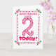 Um cartão de aniversário bonito para uma primo fêmea de dois anos, com um design floral bonito em tons de rosa e verde, feito de uma colagem de papel pintada à mão por Judy Adamson.