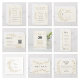 Espessura de 18 pt / Gramatura de 120 lb. Branco suave, textura delicada.