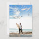 Nota de serviço de memorial de praia tropical, cartão personalizado de anúncio de funeral com modelo de foto. Cartões duplos, planos têm texto em ambos os lados com fundo oceânico. "Na memória amorosa" com o nome em negrito impresso no topo, com datas abaixo e um parágrafo para mais texto. Inclua uma foto atrás, debaixo de uma cena de pássaros voando. Escolha papel atualizado para a versão impressa ou escolha a opção de download.