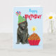Feliz aniversário com este design bonitinho com um sorridente e vestido cachorrinho belga Sheepdog com um cupcake de aniversário. O texto pode ser facilmente alterado; basta clicar no botão personalizar.