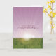 Cartão de simpatia com campo de grama, céu roxo e raios de sol.