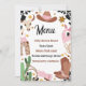 Cardápio de Comida de aniversário Rustic Pink First Rodeo Birthday Sign Bold principalmente com cartaz de comida de aniversário rodeado de uma menina rosa e rosa, com chapéu de vaquinha marrom e rosa, crânio de touro, cacto, corda, luva de vaquinha, botas e muito mais.