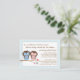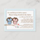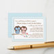 Um poema encantador solicita que os convidados tragam um livro para o futuro bebê para começar a nova mãe com uma biblioteca de livros infantis amados. Basta inserir este doce dentro do envelope do chá de fraldas. O adorável esquema de cores azul-bebê, amarelo e hortelã com uma fileira bonita de livros correspondentes faz um design perfeito para coordenar com quase qualquer convite para um chá de fraldas para um menino.