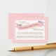 Um poema encantador solicita que os convidados tragam um livro para o futuro bebê para começar a nova mãe com uma biblioteca de livros infantis amados. Basta inserir este dentro de cartão doce no envelope do chá de fraldas, o padrão de bolinhas rosa e branco pastel doce é perfeito para coordenar com quase qualquer convite de chá de menina também.
