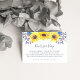 Vire essas cartas para o chuveiro do seu bebê, convidando os convidados a trazer um livro para o bebê em vez de um cartão. O Country Chic design apresenta um aglomerado de girassóis de cor amarela, pequenos marinhos azuis e roxos, e folhagem verde que corresponde à nossa coleção de convites Flowerfields. Um poema doce explica o conceito e a solicitação dos "livros para bebê", e pode ser modificado para atender às suas necessidades.