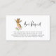 Peça aos hóspedes que ajudem a encher a biblioteca do seu bebê. Peça-lhes que tragam um livro em vez de um cartão com esta inserção de solicitação de livro. Apresenta ilustrações de aquarela de uma girafa bebê e de um hibisco rosa com uma escrita caprichosa. Este cartão de chá de fraldas safari é perfeito para chás de fraldas de verão. Itens correspondentes estão disponíveis.