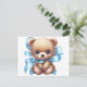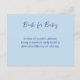 Cartão de solicitação de livro para acompanhar seus convites de chá de bebê. Se você quiser pedir aos convidados que forneçam um livro como presente para o chá de bebê, considere este cartão de solicitação de livro para chá de bebê com urso azul. Use o modelo para personalizar.