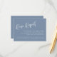 Este cartão de solicitação de receita de chá de noiva azul jeans é perfeito para um chá de noiva azul terroso. O design apresenta uma tipografia elegante, mas rústica.