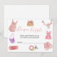 Um cartão de solicitação de jogo de sorteio de fraldas para chá de bebê com uma linda linha de roupas de bebê boho.
