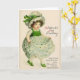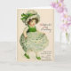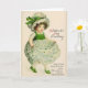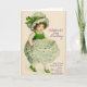 Cartão do dia de St Patrick do vintage/Victorian. Menina irlandesa adorável em um vestido do trevo! Cumprimento do dia de St Patrick! Biddy McCarty. O orgulho do partido. Não poderia pisar fora como você, meu caro!