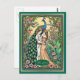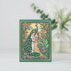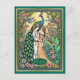 O cartão postal no cartão de tarot Os Amantes simboliza união, harmonia, conexão profunda, equilíbrio emocional e alinhamento de valores. A cena romântica apresenta um casal se abraçando em meio a um jardim exuberante, cercado por flores vibrantes, árvores carregadas de frutas e pavões.