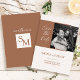Elegante cartão de salvar a data de terracota com monograma personalizado e foto do casal. Design minimalista com tons quentes, perfeito para casamentos modernos ou rústicos. Totalmente personalizável e impresso em papel cartão premium.