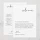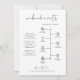 Esta carta de boas-vindas de casamento e cronograma apresenta uma fonte manuscrita arrojada e um design minimalista moderno. A simples combinação de cores preto e branco torna-a um complemento perfeito para qualquer evento. Edite facilmente a *maioria* das palavras neste cronograma. Clique em 'clique para personalizar ainda mais' na seção de personalização para abrir o editor completo. Para adicionar novos ícones, visite https://www.svgrepo.com/ e procure o ícone que você precisa. Baixe como .svg e arraste e solte no editor Zazzle. Altere a cor do ícone no lado direito do editor.