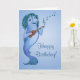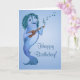 Cartão bonito do aniversário com um peixe toony e seu ukulele.