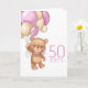 Balões rosa giro de 50º aniversário cartão de ursinho de menina doce ursinho personalizado cartão de bebê para uma garota. Podemos esperar muito. Clique no botão "Personalizar!" para alterar o tamanho do texto, a cor do texto, o estilo da fonte e muito mais!