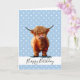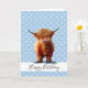 FELIZ ANIVERSÁRIO AZUL BOY LONG HAIR BROWN CARTÃO DE VACA azul doce vaca bebê personalizada para um menino. Clique no botão "Personalizar!" para alterar o tamanho do texto, a cor do texto, o estilo da fonte e muito mais!