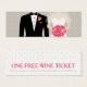 O cartão de recepção de casamento é parte de um jogo de casamento correspondente. Ideal para dar às mulheres membros da sua festa de casamento um copo de vinho grátis na sua recepção de casamento depois que o bar aberto fechar para manter seus custos baixos, mas para manter a generosidade com aqueles ajudantes e convidados especiais. Personalize com as ofertas de bebidas e a isenção de responsabilidade.