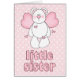 Urso bonito com asas de coração cor-de-rosa e vários pequenos corações flutuantes com texto 'Irmã Pequena'. Tem designs de irmãs e irmãs do meio.