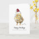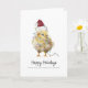 Cartão de Natal de frango de aquarela 5x7 dentro com envelope pintinho de bebê embrulhado em luzes de Natal