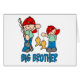 Dois pequenos pescadores bonitinhos vestindo pequenos bonés vermelhos e segurando peixe com texto que diz 'Big Brother'. Cor de fundo personalizável. Tem um irmão design.