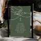 Esta carta de assentos verde de sábio refinada da Coleção Sophia apresenta caligrafia em branco nítido. Elegante, mas ao ar livre — é ideal para jardins, vinhedos ou casamentos florestais com um sentimento natural e romântico. A placa impressão na frente e atrás (lado duplo).