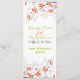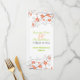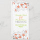 Magnolia flores laranja tangerina, cartão de cardápio floral personalizado de casamento de verde limão, com um belo design magnólia moderno com flores laranja tangerina tango, botões, um texto de pássaro e verde limão. Ivory, verde limão, laranja tangerina, preto, cinza. Excelente para um casamento de primavera ou jardim de verão.